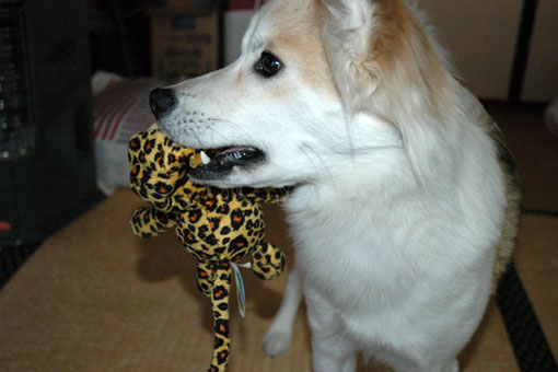 ・・・で、(引っ張りっこをして、)これで遊ぼうよ!と、目の前に来るのが日課?です。