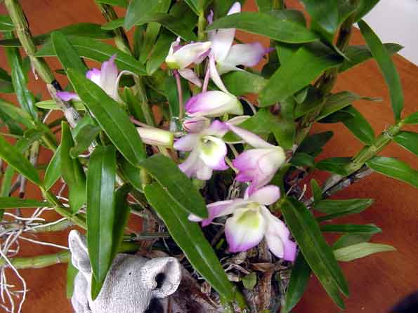 お花屋さんで、おまけで頂いたデンファレですが、もう今年で10年目です! 2003/2/4 |